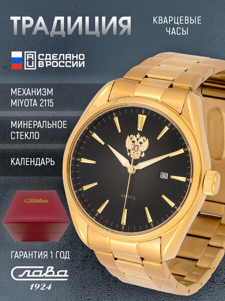 {"widgets":{"@light/ProductM2bEdoOnlyBadge":{"/content/page/fancyPage/defaultPage/m2bEdoOnlyBadge":{"wrapperProps":{"margins":{"top":"2"}},"isM2bEdoOnlyEnable":false}}},"meta":{"/content/page/fancyPage/defaultPage/m2bEdoOnlyBadge":{"name":"@light/ProductM2bEdoOnlyBadge"}},"collections":{"views":{"defaultOffer":"vi_16045770595192872684_bi_501333250248162423"},"viewItem":{"vi_16045770595192872684_bi_501333250248162423":{"id":"vi_16045770595192872684_bi_501333250248162423","composeId":"16045770595192872684","buyOptionId":"bi_501333250248162423"}},"buyOption":{"bi_501333250248162423":{"id":"bi_501333250248162423","title":"Наручные часы Слава Традиция, золотой, черный","offerId":"GcAcnf6NYqdfvG20oMpfEw","slug":"naruchnyye-chasy-slava-traditsiya-4449042100-2115","trackingLinks":{"cpa":"/KQPnFcwYMH4G0aJ4ZK-KQeHwx71O","promotionUrl":"/2PH4P71NPGXglGe8d5vzuya44vBJ"},"skuId":"4732222980","productId":"1498861251","categoryId":"91259","navnodeId":"51960073","departmentId":"54432","showUid":"17716614251758414259906001","counterStep":1,"minimum":1,"maximum":5,"price":{"value":3784949,"currency":"UZS"},"vendorId":"4723927","feeShow":"OTNDnItfwRMlLJby2gHopf5ODRAQniS25STZUSNxrkorQYnIC7B7-eraSRWUOn4FOu4OYd8A1SXvRh2rOcaHiEMzVdvIL1kpCg1R0wl03tAK-kbcws1qbLNOR044UDqeCjn0W8p1oWxviv8SaPxd-4F1Kt6ZK_Y2wC5kz8xB43nWOdV8gpeAIuvEGYxMbRTw95kRbDkDAtY1iFY2SHUdE22G1_YfmlAwRg7ZIgMPdpQZaJL-qAvZFWO2ZzohAmvJamK4WIaekOLD1CC6jkn_Qe4OnCoNrgiH0GzWvTBxxa4,","feedId":"25679837","feedOfferId":"25679837.260012","shopId":"431782","supplierId":"77857167","businessId":"864339","supplierName":"ЧК Слава - Русские часы","businessName":"ЧК Слава - Русские часы","hasAnySize":false,"hasAnyDelivery":true,"benefitTypeCode":"waremd5","basePrice":{"value":4205603,"currency":"UZS"},"promos":[{"key":"qnMAt4qIJfIsmldjHOyQWg","type":"unknown","shopPromoId":"cf_bp_1000325","anaplanId":"cf_bp_1000325","landingUrl":"https://market.yandex.ru/special/blocking-promo-landing?shopPromoId=cf_bp_1000325"},{"key":"EONCkjywlXjnbzBXfrdu9A","type":"direct-discount","shopPromoId":"price_increase_promo_77857167_dd","anaplanId":"price_increase_promo_77857167_dd","landingUrl":"https://market.yandex.ru/special/direct-discount-landing?shopPromoId=price_increase_promo_77857167_dd"}],"flags":["isVisual","isFby","isOnDemand","isCrossborder","isFashion"],"analytics":{"warehouseId":"172","paymentType":"ANY","paymentMethodTypes":["BY_CARD_ONLINE","BY_CARD_TO_COURIER","IN_CASH"],"deliveryOptions":[{"deliveryType":"pickup","fromDate":1772439025,"toDate":1772611825,"priceInfo":{"value":0,"currency":"UZS"}},{"deliveryType":"pickup","fromDate":1772439025,"toDate":1772611825,"priceInfo":{"value":0,"currency":"UZS"}},{"deliveryType":"delivery","fromDate":1772439025,"toDate":1772611825,"priceInfo":{"value":0,"currency":"UZS"}}],"shopSku":"260012","placementType":"3P","ownMarketPlace":true,"shopSlug":"yandex-market","yandexBnplInfo":{"enabled":true},"promos":[{"key":"qnMAt4qIJfIsmldjHOyQWg","type":"unknown","shopPromoId":"cf_bp_1000325","landingUrl":"https://market.yandex.ru/special/blocking-promo-landing?shopPromoId=cf_bp_1000325","isPersonal":false,"description":"Отключение магазинов по ID промо от ДЦО. Узбекистан"},{"key":"EONCkjywlXjnbzBXfrdu9A","type":"direct-discount","shopPromoId":"price_increase_promo_77857167_dd","value":10,"landingUrl":"https://market.yandex.ru/special/direct-discount-landing?shopPromoId=price_increase_promo_77857167_dd","isPersonal":false}],"hypeBadge":{"hasBadgeRare":false}},"deliveryType":"PICKUP","imageMeta":{"namespace":"mpic","groupId":13666838,"key":"2a0000019b02b5910d566f8ebfd29a96b9d9"}}},"market2Business":{"current":{"id":"current","isM2b":false}}}}