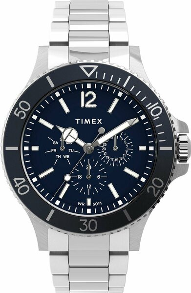 Мужские часы. Коллекция Harborside. Выразительный дизайн часов станет идеальным завершением повседневного образа. Тип механизма: кварцевый. Корпус: сталь. Циферблат: синий. Браслет: стальной. Водозащита: 50WR. Подсветка: люминесцентные стрелки. Стекло: минеральное. Календарь: число, день недели. Габаритные размеры: D 43мм, толщина 11мм, ширина браслета 20мм.