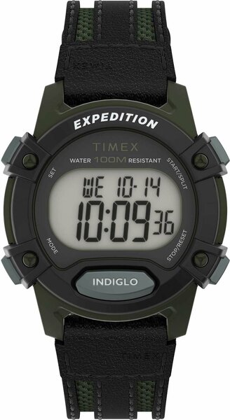 Мужские часы. Коллекция Expedition. Expedition. Пластиковый круглый корпус. Сплит-хронограф. Цифровой циферблат с фирменной подсветкой Indiglo. На дисплее отображаются день недели, дата и месяц, время до 1/100 секунды арабскими цифрами. Стальная задняя крышка крепится на 4-х винтах. Удобный текстильный ремешок с кожаными вставками. Классическая застежка. Тип механизма: кварцевый. Корпус: пластик. Циферблат: ЖК серый. Браслет: текстильный ремешок с кожаными вставками . Водозащита: 100WR. Подсветка: Indiglo. Звуковой сигнал: будильник. Стекло: пластиковое (акриловое). Календарь: число, день недели, месяц. Габаритные размеры: D 33мм, ширина ремешка 16мм.