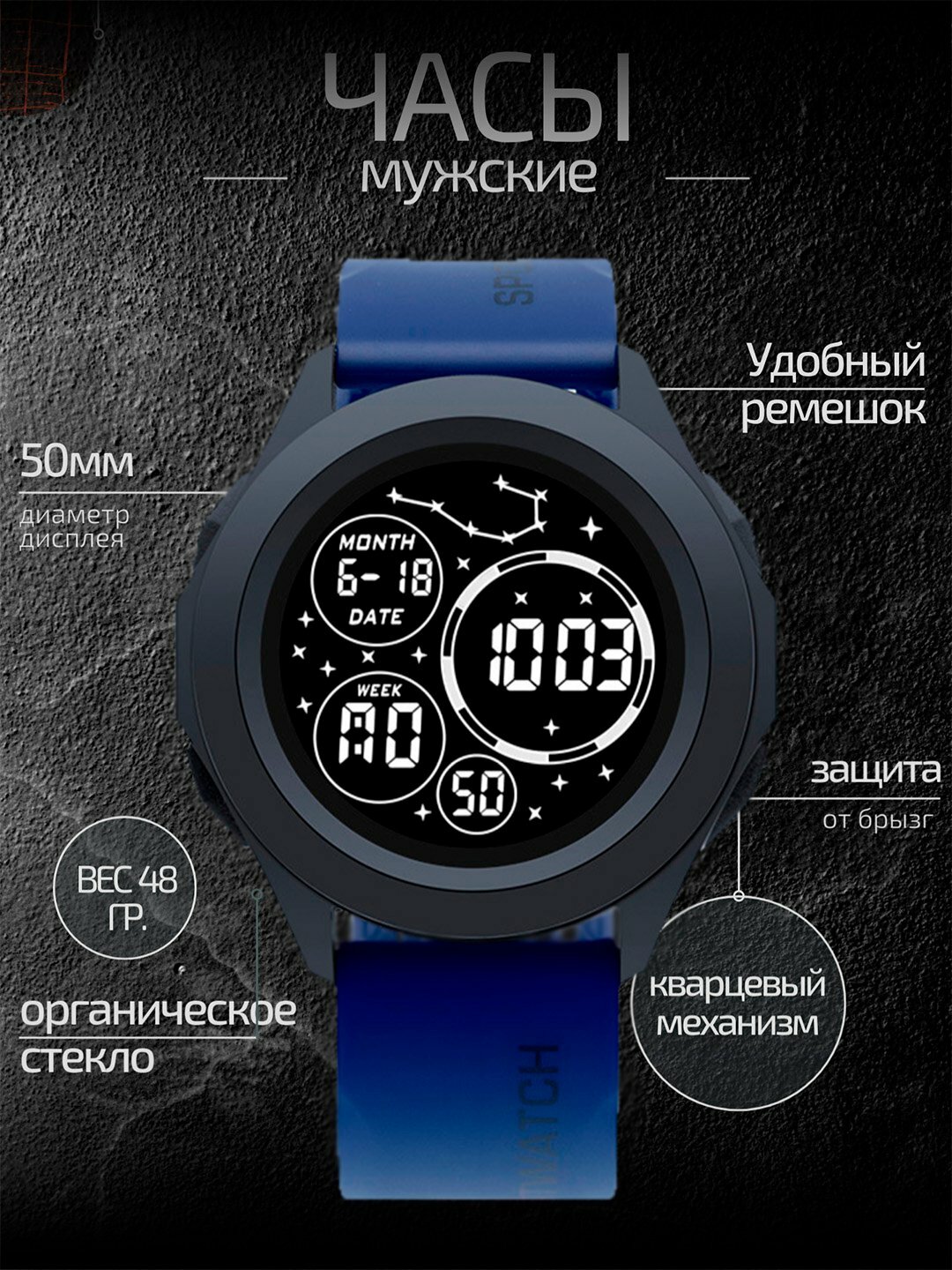 Наручные часы Vector 822-1 Представляем многофункциональные цифровые спортивные часы в стильном черном корпусе. Эти часы станут незаменимым помощником для активного образа жизни. Большой и легко читаемый дисплей отображает время, дату и другие полезные функции, такие как: секундомер, будильник, таймер, дата. Удобный ремешок обеспечивает комфортное ношение во время тренировок и повседневной носки. Корпус защищает часы от внешних воздействий. Идеальный выбор для тех, кто ценит функциональность и спортивный стиль. Органическое стекло. Удобный ремешок Вес: 48гр. Диаметр циферблата: 50мм. Кварцевый механизм. Цифровой дисплей. Подсветка экрана. Защита от брызг. Предупреждение* 1. Берегите часы от ударов, падений и сильной тряски – во избежание потери точности хода, а также деформации деталей корпуса и механизма. 2. Не оставляйте часы возле источников бытового магнитного излучения (например, на микроволновке или колонке аудиосистемы). Сильное магнитное поле влияет на точность хода и в целом на исправность механизма. В большей степени это относится к механическим часам (особенно важно не забывать снимать их перед рамкой металлодетектора). 3. Не храните часы в местах с низкой или высокой температурой (для кварцевых – ниже 0° и выше 45°). Резкие перепады температуры влияют на сохранность декоративных элементов циферблата и работоспособность механизма. 4. Во избежание образования налета, окисления или потемнения металла не допускайте попадания на часы едких химических веществ – особенно бензина, растворителей, моющих и косметических средств, клея, духов, медикаментов. 5. Чтобы не поцарапать часы, храните их в сухом месте отдельно от прочих украшений. 6. Класс водонепроницаемости - 3 АТМ. Это значит, с такими часами на запястье можно мыть руки, не разбрызгивая воду, кратковременное пребывание под дождём они тоже выдержат. Но в целом часы нужно беречь от влаги.