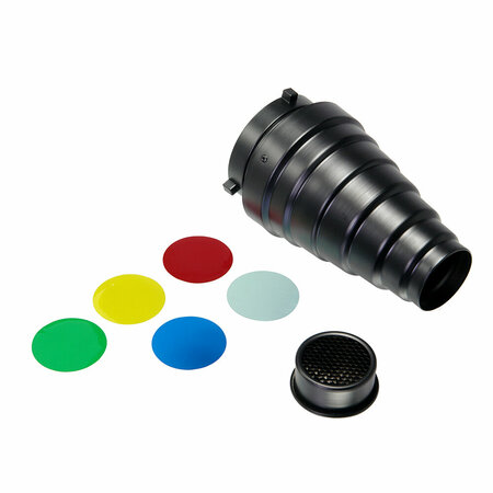 Наименование в учётной системе 1С: Насадка коническая FEA-BW Насадка коническая Falcon Eyes FEA-BW изготовлена из металла и представляет собой тубус с байонетом Bowens. Позволяет получать узконаправленный луч света для создания светового или цветового акцента на объекте съемки или фоне и обеспечивает широкие творческие возможности в съемке. Длина насадки 20,5 см, диаметр выходного отверстия 56 мм. В комплекте цветные фильтры и сотовая насадка.