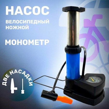 Насос ножной (складной) со встроенным манометром, отлично подойдет для того что бы подкачать мяч, колесо велосипеда, коляски или даже машины. В наборе идёт 3 насадки.