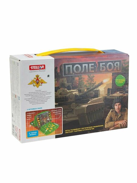 Настольная игра «Поле боя» - это более удобный и привлекательный вариант «тетрадной» игры «Морской бой». В новом виде она является достойным конкурентом модным гаджетам. Раскладывающийся чемодан для двух участников позволит каждому их них почувствовать себя командиром танковой дивизии. Как будто глядя в монитор, перед малышами будет раскрываться карта дислокации сил противника. В внизу открывается обзор на поле со своими танками, почти как настоящими. Игра «Поле боя» идеальна для того, чтобы познакомить детей с основами стратегии и тактики. Для детей от 6-и лет. Учит играть по правилам, взаимодействовать с другими детьми. Формирует произвольное внимание. Развивает память и логическое мышление. Материал: полистирол. Размер изделия: 270х180х70 мм.