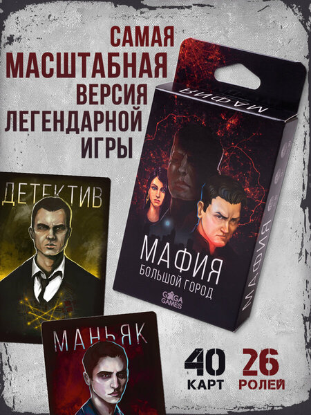 Разговорная настольная игра с тайными ролями для большой компании и вечеринки Мафия Большой Город
