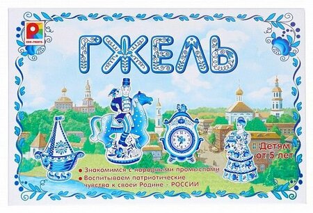 "Гжель" - игра, которая познакомит с гжельской керамической игрушкой – старинным народным промыслом. Она отличается простотой, пластической формой и яркой синей росписью на белом фоне Фарфор Гжели - это декоративная посуда, сувенирные сосуды, малые формы скульптуры и прочее. Детям предлагаются несколько вариантов игры: развивающая игра — лото, мозаика, раскраска элементов росписи и гжельской керамики. Разрежьте 14 карт по пунктирным линиям и у вас получится 32 карточки с изображениями элементов росписи, 48 карточек мозаики и 8 бумажных карт для рисования элементов росписи. Комплектность: - карты- лото - 8 шт; - карты - 14 шт; - листы -раскраски - 8 шт; - правила - 1 шт.