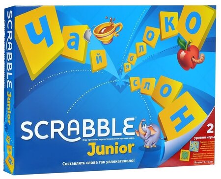 Теперь и дети смогут посоревноваться в составлении слов. Специальная версия игры «Скраббл» для детей подарит вашему ребёнку хорошее настроение и новые знания в области родного языка. Две стороны доски рассчитаны на разные уровни сложности игры. На первом игровом поле изображены различные картинки-подсказки, которые являются взаимосвязанными словами. Эта комбинация слов и картинок поможет ребёнку научиться правильно писать слова. На втором поле играем по-взрослому, без подсказок. Оно предназначено для тех, кто уже знаком с написанием слов и умеет грамотно их составлять. Игра помогает ребёнку познакомиться с алфавитом, новыми словами и их правильным написанием, развивает логику и тренирует внимание.