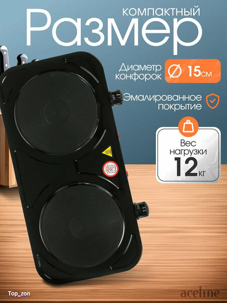 Настольная электрическая плита: черный цвет и функциональность Компактность и удобство Настольная электрическая плита - это незаменимый помощник на вашей кухне. Благодаря своим компактным размерам и удобству использования, она станет вашим надежным помощником в приготовлении пищи. Черный цвет и стильный дизайн Плита выполнена в стильном черном цвете, который легко впишется в любой интерьер кухни. Белый цвет конфорок и переключателей добавляет элегантности и современности. Функциональность и безопасность Плита оснащена всеми необходимыми функциями для комфортного и безопасного приготовления пищи. Вы сможете легко регулировать температуру и мощность нагрева, а также использовать таймер для автоматического отключения плиты. Выбирая настольную электрическую плиту, вы получаете надежного помощника на вашей кухне, который обеспечит комфорт и удобство в процессе приготовления пищи.