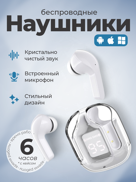 Беспроводные наушники c прозрачным кейсом представляют из себя идеальное сочетание цены и качества беспроводных наушников, которые обеспечивает вам неограниченную свободу. Наушники закрытого типа с активным шумоподавлением, они полностью перекрывают слуховой канал и заглушают внешние шумы. Это улучшает использование наушников в шумных местах, таких как транспорт или улица. Вам Не будет нужно сильно прибавлять звук, Вы сможете наслаждаться прослушиванием любимой музыки, подкастов на комфортной громкости. У этих наушников великолепное качество звука, особенно оно понравится слушателям, которые любят басы. Если басов для вас окажется избыточное количество, то, их можно убрать, настроив эквалайзер в телефоне. Наличие басов в этой модели не означает, что остальные частоты отсутствуют, и средние и высокие частоты тоже великолепно звучат. Качество сопряжения наушников со смартфоном было улучшено, неожиданная потеря соединения теперь исключена. Корпус наушников и кейса изготовлены из высококачественного пластика. Наушники не будут давить или натирать, и не будут болтаться в слуховом канале. Блютуз наушники отлично работают с устройствами с операционными системами iOS, Андроид. Наушники беспроводные, наушники, беспроводные наушники, безпроводные наушники, блютуз наушники, наушники, bluetooth наушники, беспроводные наушники для телефона, без проводные наушники, наушники безпроводные, наушники на айфон, наушники для айфона, наушники блютуз, наушники bluetooth, наушники без проводные, наушники вкладыши.