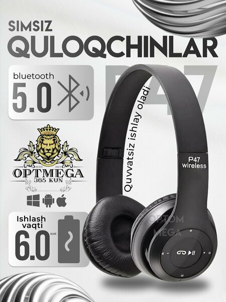 Bluetooth-наушники P47 Wireless - это беспроводные наушники с современным, легким и удобным дизайном, обеспечивающие высококачественную передачу звука. Он легко подключается по Bluetooth к телефону, планшету, ноутбуку или другим устройствам. Наушники оснащены функциями прослушивания музыки, ответа на звонки, регулировки громкости и управления треками. ✓ Заряд батареи: 4-6 часов ✓ Диапазон Bluetooth: до 10 метров ✓ Поддерживает: TF карту, FM радио, AUX кабель ✓ Внутренний микрофон - для звонков ✓ В упаковке: 1 шт. наушники P47, USB-кабель