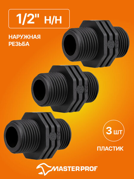 Ниппель пластиковый 1/2" н/н, 3 шт. - это фитинг сантехнического назначения, предназначенный для использования в системах водоснабжения и инженерной сантехники. Он обладает высокой прочностью и долговечностью благодаря использованию качественного пластика в производстве. Ниппель пластиковый н/н 1/2" Masterprof предназначен для соединения с резьбовыми кранами, трубами. Простая и надежная конструкция позволяет обеспечивать быстрый монтаж трубопроводов и аксессуаров. Параметры ниппеля: Ширина: 3,8 см; Высота: 4,2 см; Глубина: 3,8 см; Материал: полипропилен.