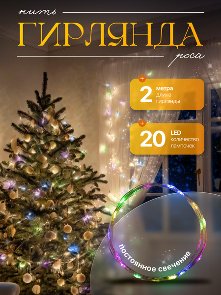 Прочные материалы и качественная сборка гарантируют долговечность: светодиоды не выгорают, провод остаётся гибким даже после многократного использования. Степень защиты IP20 подтверждает безопасность для применения внутри помещений. Выберите гирлянду «Нить» — и пусть каждый день будет чуть светлее и теплее благодаря мягкому мерцанию огней.