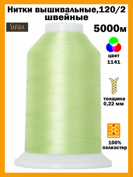 Нитки для вышивания SAFIRA SILKO, номер ТКТ 120, выполнены на пластиковой прочной катушке с длиной нити (намот) 5000 метров. Нить изготовлена из высококачественного прочного 100% полиэстера - материала премиум-класса Трилобал. Швейные нитки устойчивы к органическим растворителям, кислоте, щелочи, износу и истиранию, УФ лучам. Они не обесцвечиваются и не линяют, не садятся, и эти проблемы не возникают при использовании в стиральной и сушильной машине. Нитка мягкая и шелковистая, не ворсистая, не дает усадки, равномерная по всей длине, имеет насыщенный, сочный цвет с особым блеском, а также обладает повышенной прочностью на разрыв ~ 1,14 кг (1120сN). Рекомендуемая игла №75-90. Конструкция нитки - 120/2. Удлинение от 20 до 25 процентов. В два раза более высокая прочность и более высокое сопротивление трению, чем у вышивальной нити из вискозы. Швейные нитки для вышивки Сафира предназначены для вышивания на любых швейных автоматах или швейных машинах, в том числе высокоскоростных, для ручной вышивки, декоративной строчки. Они отлично подходят для оверлока, стегания, как нижняя нитка. Применяются в вышивке логотипов на спортивной, детской, рабочей и корпоративной одежде, джинсах, обивке, предметах интерьера, кепках, сумках и т. п, подходят для рукоделия и творчества, в том числе изготовления изделий из бисера (бисероплетения), вышивания бисером, плетения браслетов. Нитка всегда обеспечивает привлекательный внешний вид шва. Выбор цветов в ассортименте ниток очень богат и разнообразие ярких цветов легко пробудит ваше воображение. На каждой бобине имеется стикер с номером цвета, благодаря которому всегда можно дополнительно заказать необходимые по цвету нитки SAFIRA. Цвет нитки может незначительно отличаться от представленного на фото из-за настроек вашего монитора. Указанный цвет и иные цвета вышивальных ниток отражены в карте цвета SAFIRA, которую можно приобрести на ЯндексМаркете по коду товара 102780270364. Швейные вышивальные нитки, наборы ниток для шитья 120 Safira Silko так же можно использовать в качестве подарка бабушке, маме, дочери и любой женщине. Нитки SAFIRA SILKO – идеальный материал для вышивания. Они сделают вашу работу простой, одновременно творческой и увлекательной.