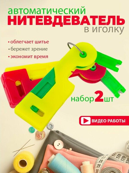 Автоматический нитевдеватель для иглы набор как волшебная палочка для всех, кто увлекается шитьем и вышивкой, 2 штуки! Ваш 14 февраля будет ярким с этим аксессуаром. Небольшой и чудесный помощник вашего хобби, который спасает от мучительного процесса - вставить нитку в иголку. Качественный и стильный подарок на 23 февраля для вас и ваших близких. Представьте – больше никакого напряжения для глаз и нервов, всего лишь одно нажатие кнопки, и вуаля, нить уже на месте! Подготовьтесь заранее, чтобы день Защитника Отечества прошел идеально. Существуют два режима работы: автоматический и ручной. Этот подарок станет удачным приобретением, которое точно пригодится на 8 марта. Для автоматического режима достаточно вставить иглу в специальное отверстие, нажать на кнопку и зацепить иглу за крючок. С другой стороны нитевдевателя находится дополнительный крючок, который позволяет просунуть нить через ушко иголки. Маленький нитковдеватель автоматический – настоящий подарок для любителей рукоделия. Игловдеватель подходит для всех типов игл и нитей, совместим с ковровой иглой и иглами для мулине, что делает его универсальным инструментом в вашем арсенале. Компактный и легкий дизайн делает использование удобным, а качественные материалы гарантируют, что вдеватель нитки в иголку будет служить верой и правдой. Автоматический нитковдеватель станет вашим незаменимым спутником, будь то дома, в ателье или в путешествии. Нитевдеватель для иголки - прекрасный подарок, который может принести радость и удовольствие любому, кто любит создавать красоту своими руками. Позвольте себе немного волшебства в рутине рукоделие для женщин и дайте волю своему творчеству без лишних препятствий! Нитевдеватели автоматические лучший подарок пожилому человеку и любителю рукоделия, облегчая процесс вдевания нити в иголку. Нитка вдеватель удовлетворит все потребности в вдевании нити в иголку. Отличный подарок для отпуска, день рождения товары для рукоделия и творчества нитевдеватель для иглы набор.