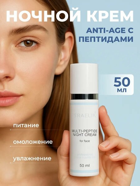 Ночной крем ISRAELIK, для лица, с пептидами, антивозрастной, питательный, 50мл