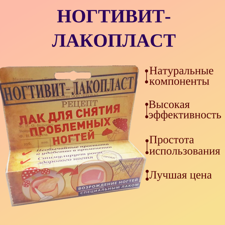 "Ногтивит-Лакопласт" – Новейшая разработка в области лечебной косметики для ногтей. Препарат предназначен для безболезненного снятия проблемной пластины. Это достойный ответ ирургическому и аппаратному методам. В отличие от уже известны и зарекомендовавши себя эффективным действием гелей "Ногтивит" и "Ногтивит-Лакопласт", средство "Ногтивит-Лакопласт" выполнено в виде гель-лака, это позволяет сократить время на обработку пораженного ногтя. В течение 15-20 минут Лак полностью высы ает и можно не бояться его смазывания. Форма упаковки имеет удобное использование – тонкий наконечник обеспечивает аккуратное нанесение.