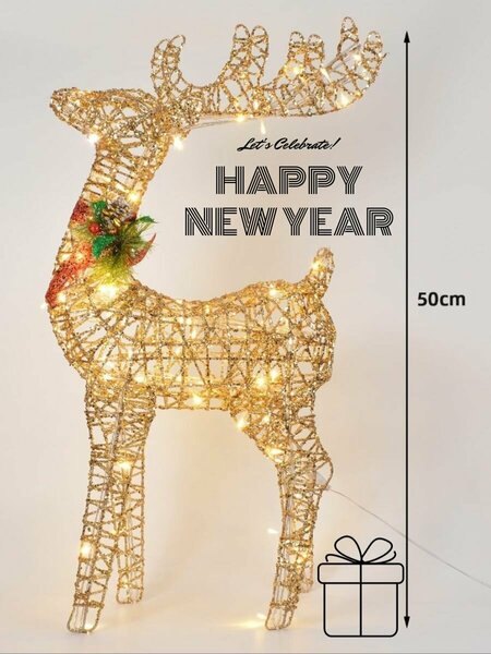 Новогодний светящийся олень деда мороза под елку new нью 2025 - эта светодиодная фигура станет ярким и неотъемлемым элементом вашего праздничного интерьера, новогодние украшения для дома, декорации для дома. Уважаемые клиенты, обратите внимание: У Оленя одна нога не короткая, а их нужно раздвинуть в разные стороны (только не в длину, а в ширину) и тогда он будет стоять ровно. Так же, чтобы не осыпались блестки, побрызгайте фигуру лаком для волос. Олени больше 40 см поставляются разобранные и сани тоже. Олень светодиодный будет привлекать внимание своим теплым свечением, создавая уютную атмосферу в вашем доме. Каркасная проволока, из которой изготовлена фигура, обладает гибкостью, что позволяет ей принимать различные позы. Вы сможете придать оленю любое положение. Декоративные блестки, с помощью которых олень украшен, придают ему праздничный и благородный вид. Чтобы они не сыпались, побрызгайте фигуру лаком для волос. Он также украшен шишками и ягодами, которые подчеркивают его рождественский характер. Фигурка подходит для использования в качестве декорации как дома, так и на улице. Он станет главным декоративным акцентом вашего новогоднего интерьера. Его световой блеск не оставит равнодушными гостей и создаст праздничное настроение. Теплое золотистое свечение оленя добавит особую атмосферу вашему новогоднему столу. Эта интерьерная фигура прекрасно сочетается с другими елочными украшениями и игрушками, создавая единое стильное и роскошное оформление. Олень работает от сети, что обеспечивает ему стабильный и длительный источник света.