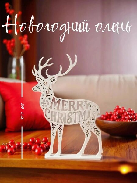 Новогодний олень, выполненный в белоснежном цвете, станет прекрасным дополнением к вашему праздничному интерьеру. Его элегантный дизайн и классический образ добавят волшебства и сказочной атмосферы в ваш дом. Эта изящная фигурка станет очаровательным акцентом на камине, праздничном столе или под елкой, создавая неповторимую новогоднюю ауру.