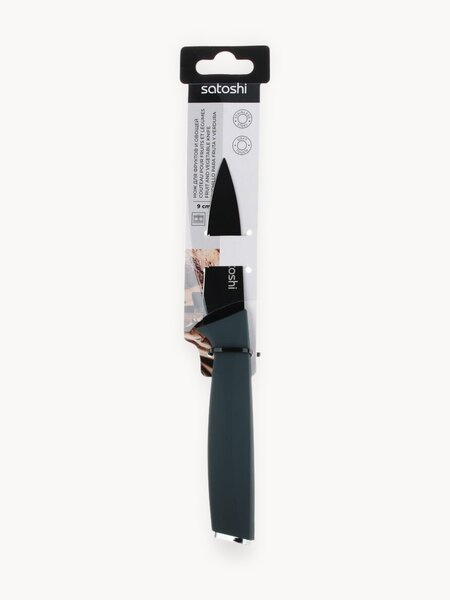 Нож кухонный SATOSHI Орис: удобство и функциональность SATOSHI Орис - это кухонный нож, предназначенный для нарезки и чистки овощей. С длиной лезвия 9 см, он обеспечивает легкость и точность при работе с овощами. Лезвие ножа изготовлено из нержавеющей стали, что гарантирует его долговечность и устойчивость к воздействию твердых продуктов и большого давления. Материал не окисляется и не влияет на вкус продуктов, что делает его безопасным для использования. Прорезиненная ручка с покрытием soft touch обеспечивает комфортное и надежное удержание ножа в руке. Благодаря этому, процесс использования ножа становится более удобным и безопасным. Нож SATOSHI Орис можно мыть в посудомоечной машине, что значительно упрощает процесс ухода за ним. Вес ножа составляет всего 57 грамм, что делает его легким и удобным в использовании. SATOSHI Орис - это надежный и функциональный кухонный нож, который станет незаменимым помощником на вашей кухне.