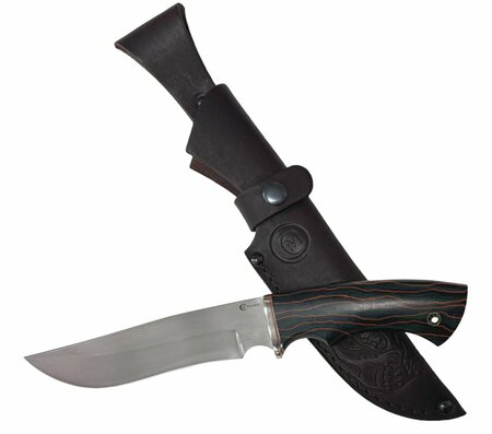Сталь Elmax Рукоять: микарта, мельхиор Общая длина, мм 273 Длина клинка, мм 147 Ширина клинка, мм 32 Толщина клинка, мм 2,4 Длина рукояти, мм 126,5 Толщина рукояти, мм 22,7 Твёрдость клинка, HRC 61-63 Нож Галеон сделанный вручную мастерами кузницы Сёмина из города Ворсма. При ковке клинка использовалась сталь Elmax, твердость которой составляет 61 - 63 HRC.
