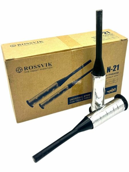 Ножки грибков N-21, 21 мм (5 шт.) Россвик — профессиональные ремонтные элементы для восстановления протектора грузовых шин. Комплект из 5 штук идеально подходит для ремонта каналов повреждений в протекторе радиальных и диагональных шин грузовиков, автобусов, спецтехники и тяжелой техники. Эти ножки обеспечивают надежную герметизацию и прочность, продлевая срок службы шин и снижая затраты на замену. Ножки грибков N-21 диаметром 21 мм предназначены для заполнения крупных проколов, порезов и изношенных каналов протектора. Они эффективно восстанавливают структуру шины, предотвращая дальнейшее разрушение корда и потерю давления. Подходят для ремонта грузовых шин с высокой проходимостью, где требуется максимальная надежность. Технология установки ножек для ремонта шин: Для надежного ремонта отверстие под ножку должно быть на 2-3 мм меньше диаметра изделия (19-21 мм). Это обеспечивает плотную посадку и прочное сцепление. Рекомендуется использовать карбидные буры высокого качества и низкооборотистую реверсивную пневмодрель на 700 об/мин для точного сверления без перегрева резины. Ремонт с ножками N-21 возможен двумя способами: