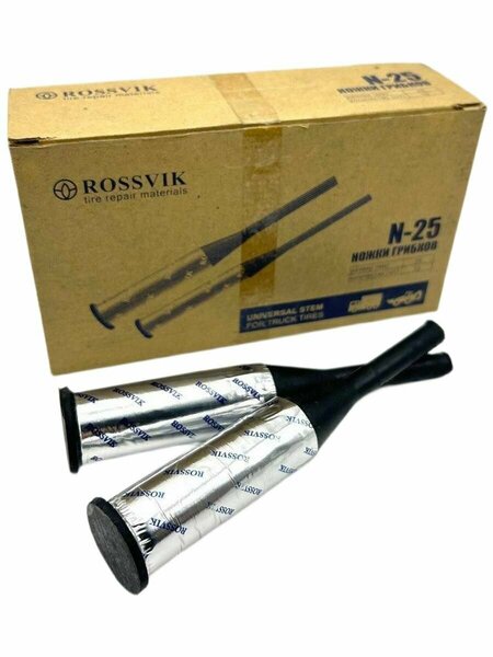 Ножки грибков N-25, 25 мм (5 шт.) Россвик — профессиональные ремонтные элементы для восстановления протектора грузовых шин. Комплект из 5 штук идеально подходит для ремонта каналов повреждений в протекторе радиальных и диагональных шин грузовиков, автобусов, спецтехники и тяжелой техники. Эти ножки обеспечивают надежную герметизацию и прочность, продлевая срок службы шин и снижая затраты на замену. Ножки грибков N-25 диаметром 25 мм предназначены для заполнения крупных проколов, порезов и изношенных каналов протектора. Они эффективно восстанавливают структуру шины, предотвращая дальнейшее разрушение корда и потерю давления. Подходят для ремонта грузовых шин с высокой проходимостью, где требуется максимальная надежность. Технология установки ножек для ремонта шин: Для надежного ремонта отверстие под ножку должно быть на 2-3 мм меньше диаметра изделия (21-23 мм). Это обеспечивает плотную посадку и прочное сцепление. Рекомендуется использовать карбидные буры высокого качества и низкооборотистую реверсивную пневмодрель на 700 об/мин для точного сверления без перегрева резины. Ремонт с ножками N-25 возможен двумя способами: