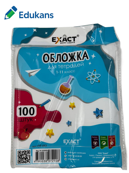 охраните свои тетради чистыми и аккуратными с набором обложек для тетрадей Exact! Эти обложки специально разработаны для школьников, они надежно защищают тетради от повреждений, сгибания и загрязнений. В комплекте 100 штук прозрачных обложек, которых хватит на весь учебный год. ✅ Характеристики: * Набор из 100 штук: Достаточное количество на весь учебный год. * Широкий спектр применения: Подходят для тетрадей всех учеников с 1 по 11 класс. * Прозрачный материал: Позволяет легко видеть информацию на обложке тетради. * Качественные и прочные: Обложки изготовлены из плотного и долговечного материала, который надежно защищает тетради. ️ * Легко надеваются: Удобно и просто надеваются на тетрадь. ✨ * Аккуратный внешний вид: Сохраняют тетради в новом состоянии и придают им опрятный вид. * Доступная цена: Большой набор по выгодной цене. С этими обложками вы сможете: * Сохранить свои тетради в чистоте на протяжении всего учебного года. * Предотвратить загибание углов тетрадей. * Сэкономить время, сделав одну покупку на длительный период. Сохраняйте школьные принадлежности вашего ребенка новыми и чистыми с обложками Exact!
