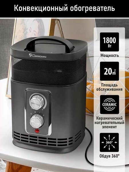 Тепловентилятор — один из самых востребованных приборов зимой и в межсезонье. Он компактен, мобилен и быстрее других бытовых обогревателей доводит температуру внутри помещения до комфортной. Тепловентилятор оснащен высокоэффективным керамическим нагревательным элементом высокой мощности. Благодаря этому прибор мгновенно выходит на рабочую температуру и быстро обогревает помещение. Керамический нагревательный элемент нового поколения создан из природного натурального материала, не выделяет вредных примесей при нагревании, не имеет запаха и очень быстро достигает рабочей температуры, при этом не выжигая кислород и сохраняя влажность воздуха оптимальной. Прибор греет воздух на 360 градусов, что существенно увеличивает площадь обдува. В зависимости от целей и размера помещения доступно 3 режима работы:– вентиляция без обогрева (режим вентилятора); – плавный нагрев и поддержание тепла;– быстрый нагрев холодного помещения. Тепловентилятор отличается пониженным уровнем шума в процессе работы, что делает его использование максимально комфортным. Автоматическое отключение при перегреве или опрокидывании обеспечивает полную пожарную безопасность обогревателя. Автоматическое отключение при перегреве и опрокидывании обеспечивает полную пожарную безопасность обогревателя. обогреватель напольный, тепловентилятор электрический, керамический обогреватель, керамический тепловентилятор. Это самый эффективный обогреватель. Прибор может работать как вентилятор! Бытовая техника для дома обогреватели и вентиляторы удобный гаджет для дома. Обогреватель подойдет для офиса или отеля. Мощный тепловентилятор напольный для дачи или коттеджа. Подойдет в качестве подарка на новый год или новоселье!