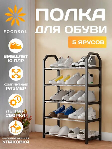 Обувница для прихожей (5 ярусов) - решение для хранения вашей обуви и аксессуаров в коридоре или прихожей! Этажерка в прихожую 5 ярусов может использоваться как подставка для предметов и хранения 10 пар обуви. Полки для обуви помогут поддерживать порядок в вашем в офисе, даче или в бане. Полка для обуви сочетает в себе удобство и стиль, делая пространство организованным и аккуратным. Простота сборки, надежная конструкция из металла и пластика прослужит вам долго. Организуйте и создайте уют дома и квартиры с нашей недорогой подставкой для обуви в прихожую.