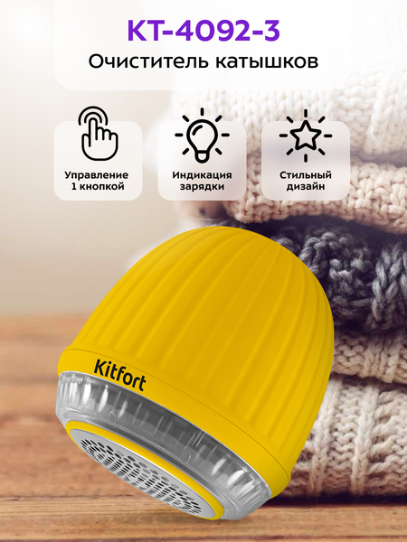 Достоинства:Компактность, дизайн, работа от аккумулятора Недостатки:Достаточно громкий, можно повредить ткань Комментарий:Ровно год пользуюсь этим очистителем катышков от Kitfort (модель КТ-4092-3 в черно-желтом цвете) и хочу поделиться впечатлениями. Прибор действительно хороший и со своей основной задачей — удалением катышков — справляется на отлично. Он моментально преображает внешний вид свитеров, кардиганов и другой одежды, делая её аккуратной и ухоженной. Мне очень нравится его современный и стильный дизайн, а также компактность: он не занимает много места и его удобно хранить. Однако в использовании требуется некоторая сноровка и аккуратность. Если слишком сильно надавить или замедлить движение, лезвия могут «схватить» и повредить тонкую ткань, поэтому я рекомендую сначала потренироваться на незаметном участке. Заряда хватает надолго, что тоже большой плюс. Несмотря на необходимость осторожного обращения, я могу рекомендовать эту модель как эффективный и симпатичный прибор для поддержания вещей в идеальном порядке. Это отличный помощник, который продлевает жизнь любимой одежде.