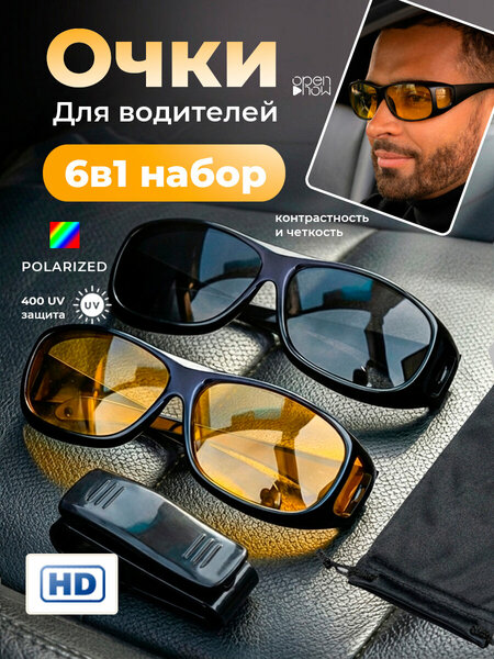Солнцезащитные антибликовые очки для водителя , не только защищают глаза водителя от яркого солнца, но и снижают риск аварийности при вождении в вечернее и ночное время. Поляризационные очки антиблик обеспечивают защиту глаз от УФ-излучения. Широкие линзы позволяют автомобилисту получать хороший обзор дороги во время вождения машины. Антибликовые очки применяют технологию антифары – они уменьшают яркость световых бликов от фар и фонарей, снега и дождя, выравнивают контрастность в ночное время, благодаря чему водитель видит дорогу ясно, четко и без искажений. Очки защищают глаза от яркого солнца. Стильный аксессуар хорошо зарекомендовал себя для использования как в светлое, так и в темное время суток. Удобная конструкция позволяет носить очки без диоптрий длительное время. Их тонкая и легкая оправа и качественные носоупоры не утомляют мужчину в длительных поездках. Мужские солнцезащитные очки можно использовать не только в авто путешествиях, для отдыха на море или в горах, но и на прогулке и спорте, для велосипедиста, для вождения на мопеде, мотоцикле, снегоходе, лыжах, а также надевать их для рыбалки и охоты. Очки унисекс станут незаменимым трендовым украшением и важной деталью модного стиля для подростков. Водительские солнцезащитные очки незаменимый и полезный подарок мужчине и женщине в авто, парню, папе, сыну и брату на 23 февраля, День рождения, 14 февраля. Набор тёмных очков антиблик защитит автомобилиста и зимой и летом.
