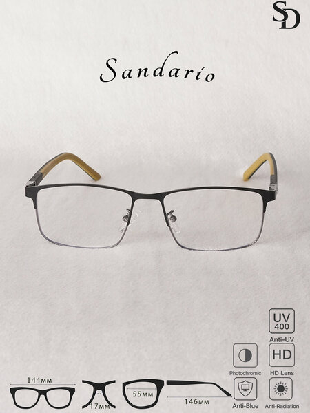 Очки SANDARIO в прямоугольной форме — стильный и лёгкий аксессуар с металлической оправой, созданный для комфортного ежедневного ношения. Модель оснащена HD-линзами с защитой Anti-Blue, Anti-Radiation и UV400, фотохромным эффектом.