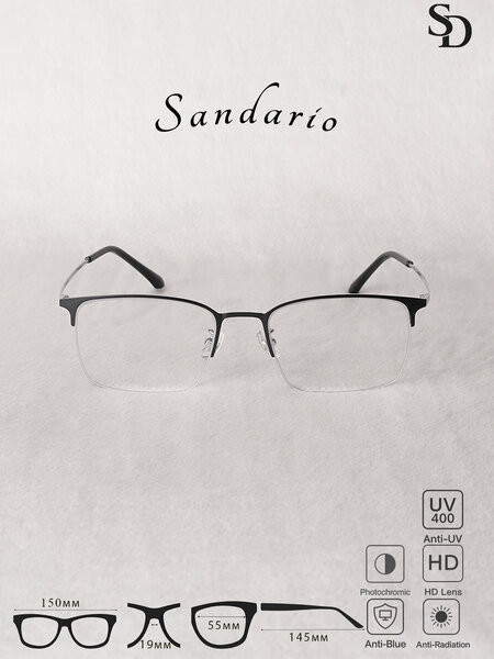 Очки SANDARIO в прямоугольной форме — стильный и лёгкий аксессуар с металлической оправой, созданный для комфортного ежедневного ношения. Модель оснащена HD-линзами с защитой Anti-Blue, Anti-Radiation и UV400, фотохромным эффектом.