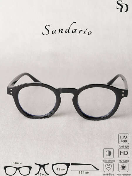 Очки SANDARIO в круглой форме — стильный и лёгкий аксессуар с полимерной оправой, созданный для комфортного ежедневного ношения. Модель оснащена HD-линзами с защитой Anti-Blue, Anti-Radiation и UV400, фотохромным эффектом. Очки обеспечивают удобную посадку и надёжную фиксацию на лице.