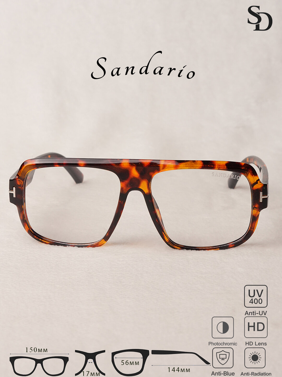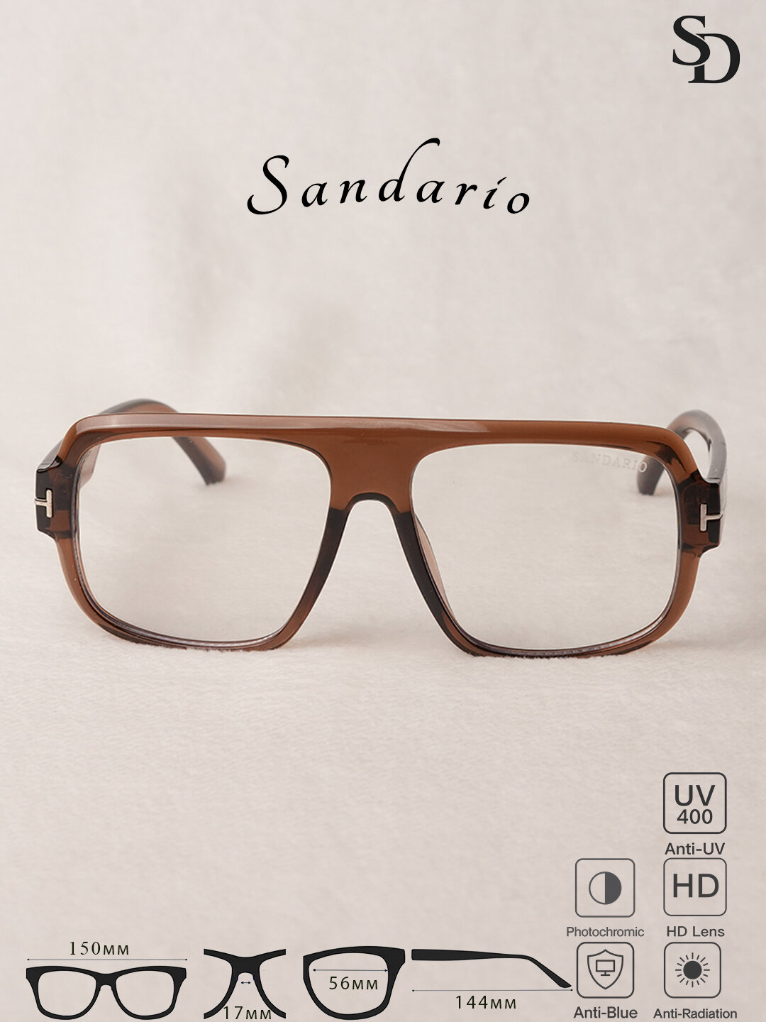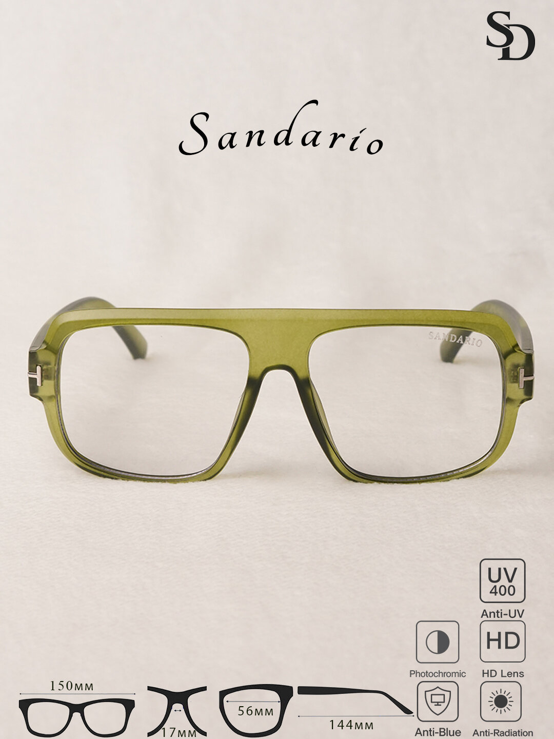 Очки SANDARIO в стиле Wayfarer — стильный и лёгкий аксессуар с полимерной оправой, созданный для комфортного ежедневного ношения. Модель оснащена HD-линзами с защитой Anti-Blue, Anti-Radiation и UV400, фотохромным эффектом. Очки обеспечивают удобную посадку и надёжную фиксацию на лице.