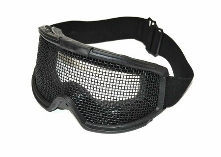 Очки защитные черн. с сеткой HY-006 (Cyma) Стальная сетка держит выстрел в упор 160 м. с. 0,20 гр. шариком. Установлена стальная, плетенная сетка. Можно носить с очками для коррекции зрения. Материал оправы: резинопластик. Удобная регулируемая резинка. Производство Китай.