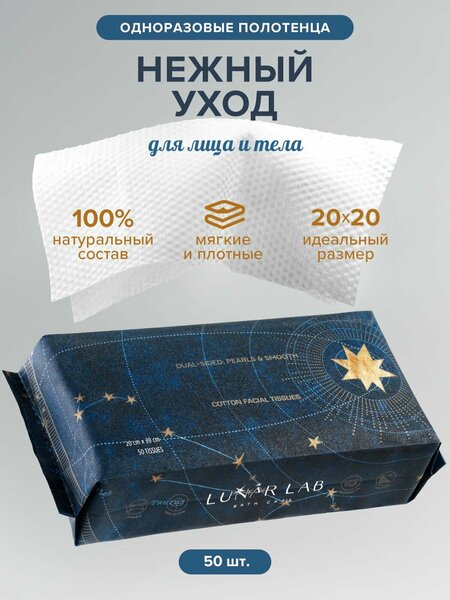 Lunar Lab, Одноразовые хлопковые полотенца для лица / 50 шт
