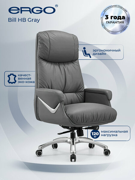 Офисное кресло ERGO "Bill", для руководителя, экокожа, серое