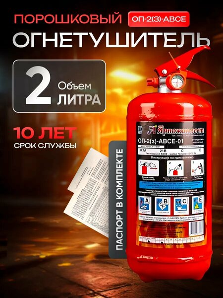 Огнетушитель порошковый ОП-2(з), 2 л устройство представляет небольшой цилиндрический баллон красного цвета с закачанным внутрь материалом. Укомплектовывается сертификатом соответствия качества, паспортом. Предназначен для первичного тушения пожаров и возгораний класса A, B, C, E (горючие и легковоспламеняющиеся жидкости, твердые горючие вещества и газы, электроустановки, не превышающие напряжение 1000 Вольт). Комплектуется распылителем на ЗПУ. Автомобильный огнетушитель 2 литра используется для устранения возгорания транспортного средства массой до 3,5 тонны. К данному виду относятся легковые, небольшие грузовые автомобили.