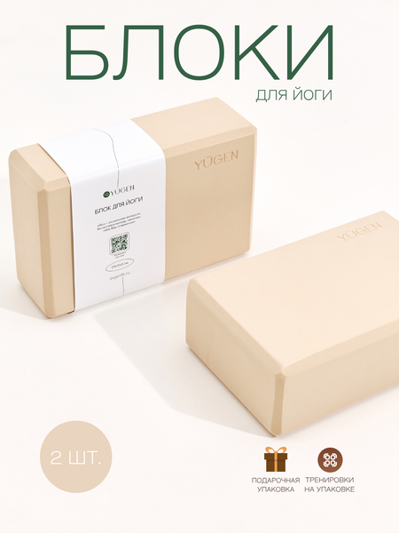 Опорный блок YUGEN для йоги и гимнастики, EVA, 2 шт./уп, бежевый