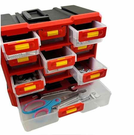 Органайзер модульный используется для хранения метизов, небольших инструментов, оснастки и других мелочей. Изготовлен из прочного пластика, устойчивого к механическому воздействию. Особенности и преимущества: - благодаря прозрачному корпусу лотков можно увидеть содержимое, не доставая контейнер; - состоит из десяти выдвижных ячеек с замками, препятствующие случайному открыванию; - специальные крепления для организации системы хранения из аналогичных органайзеров; - складная ручка для удобной транспортировки. Количество ячеек: 10 Длина (мм): 160 Ширина (мм): 300 Высота (мм): 250 Вес брутто (кг/шт) : 0.7 Страна производства: Россия