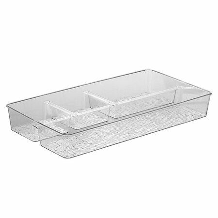 Органайзер 4-х секционный универсального назначения. Используется для хранения аксессуаров, косметики, канцелярии, предметов рукоделия. Органайзер можно использовать и в качестве менажницы для подачи орехов, сухофруктов, фруктов или овощей. Органайзер можно поставить на комод, можно убрать в выдвигающиеся ящики. Органайзер выполнен из прочного, прозрачного пластика с рифленым дном. Размер 38,5х20х5см, размер отделений: 1- 36х8см; 1- 16х8см; 2 отделения 8х8см.