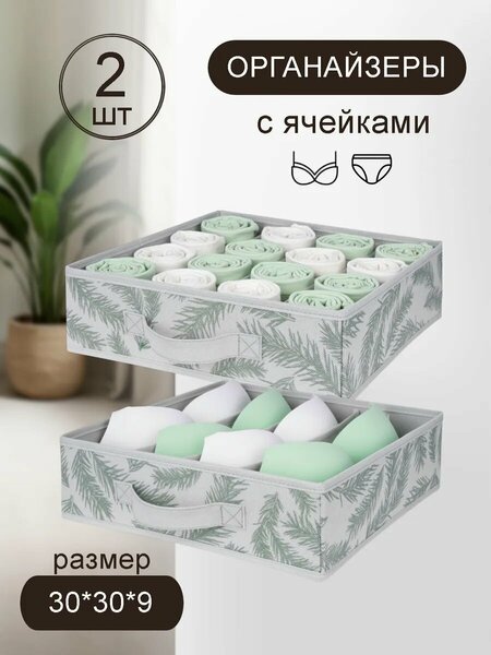 30 x 30 x 9 см · гардеробная/спальня · нетканое полотно/картон · 2 шт. · зеленый/серый