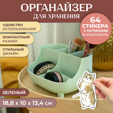 Органайзер для косметики – это удобный и практичный аксессуар, который поможет организовать хранение всех необходимых средств для макияжа и ухода за кожей. Он предлагает удобное и стильное решение для оптимизации пространства. Органайзер для хранения косметики изготовлен из прочного полипропилена. Данный материал не выделяет токсичных веществ и не имеет запаха, что делает его абсолютно безопасным для здоровья. Он не деформируется и не теряет первоначальный внешний вид длительное время. В комплекте с органайзером идут 64 наклейки с котиками (размер наклеек от 2 до 6 см).