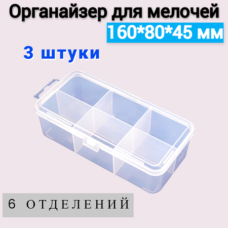 Органайзер для мелочей Jettools 160*80*45 мм 6 отделений, 3 шт. Грамотная организация рабочего места: Органайзер для мелочей Jettools с 6 отделениями предназначен для хранения мелких крепежей и расходных материалов, обеспечивая порядок и удобство при работе. Изготовлен из высококачественной пластмассы: Материал органайзера не содержит вредных веществ, что делает его безопасным для использования. Прозрачная крышка: Позволяет видеть содержимое органайзера, что облегчает поиск необходимых аксессуаров. Комплектация: Набор из 3 органайзеров для мелочей Jettools, каждый из которых имеет размеры 160*80*45 мм и 6 отделений. Цвет товара: Прозрачный.
