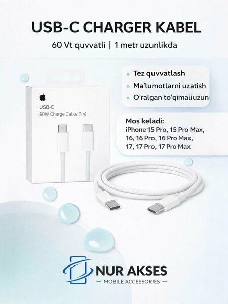 Айфон кабель Type-C to Type-C USB проводной Apple - это высококачественное сетевое зарядное устройство, разработанное специально для iPhone 15, 16 и 17 Pro Max. Этот кабель обеспечивает быструю и безопасную зарядку вашего устройства, а также передачу данных между устройствами. Сожалеем, что товар не оправдал ожиданий. Кабель является премиум-аналогом, не оригинальным Apple — эта информация указана в карточке. Толщина связана с усиленной изоляцией для долговечности. Вы можете оформить возврат через Маркет, если товар вам не подошёл. Кабель изготовлен компанией Apple, которая зарекомендовала себя как производитель надежной и качественной продукции. Особенностью данного кабеля является его проводная конструкция. Это означает, что кабель не имеет встроенного аккумулятора, что делает его более надежным и долговечным. Использование кабеля Apple для зарядки и передачи данных гарантирует безопасность и стабильность работы вашего iPhone. В целом, оригинальный кабель Apple Type-C to Type-C USB проводной - это надежное и качественное решение для зарядки и передачи данных вашего iPhone 15, 16 или 17 Pro Max. Оригинальный USB-C кабель от Apple, совместимый с iPhone, iPad и MacBook. Обеспечивает быструю, безопасную и стабильную зарядку ваших устройств. Основные характеристики: Мощность быстрой зарядки: до 60W (поддержка PD – Power Delivery). Качественные материалы: прочная, гибкая и термостойкая оболочка. Усиленные коннекторы: устойчивы к износу и окислению. Скорость передачи данных: до 480 Мбит/с. Совместимость: iPhone 8 и новее, iPad, MacBook Air/Pro, AirPods и другие устройства Apple. Длина: 1 метр Цвет: Белый (классический стиль Apple). Преимущества: Заряжает с 0% до 50% за 30 минут (с PD-адаптером). Не перегревается, защищён от перепадов тока. Прочный и надёжный, идеально подходит для ежедневного использования. Премиум качество – защита аккумулятора вашего устройства.