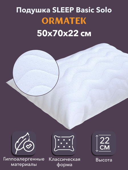 Орматек Подушка для сна SLEEP Basic Solo 50х70х22 см, с чехлом из микрофибры
