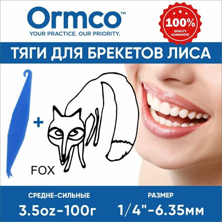 Ортодонтические резинки брекетов Эластики Ormco -Лиса 6.35 OZ 100г.