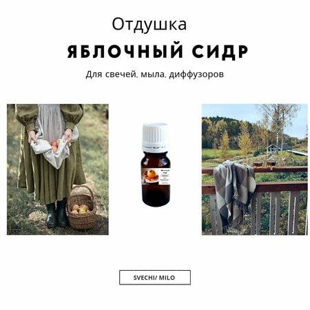 {"widgets":{"@card/UniversalPromoBadge":{"/content/page/fancyPage/defaultPage/universalPromoBadge":{"wrapperProps":{"margins":{"bottom":"3"}},"initialTime":1772263944023,"offerComposeId":"3855726184453818920"}}},"meta":{"/content/page/fancyPage/defaultPage/universalPromoBadge":{"name":"@card/UniversalPromoBadge"}},"collections":{"productServiceSnippets":{"3855726184453818920":{"productSnippet":{"snippetId":"document_id","type":"MODEL_CARD_LAYOUT","productPayload":{"snippetStyle":"NORMAL","title":{"value":"Отдушка \"Яблочный сидр\" 20 мл для свечей, мыла и диффузоров"},"badges":{},"price":{"actualPrice":{"amount":{"intPart":96828,"currency":"UZS"},"style":"RED","type":"OTHER_DISCOUNT"},"oldPrice":{"amount":{"intPart":196967,"currency":"UZS"},"style":"STRIKETHROWED"}},"signals":{"customsFee":{"text":{"text":"Возможна пошлина"}}},"gallery":{"mediaItems":[{"picture":{"baseUrl":"https://avatars.mds.yandex.net/get-mpic/12554399/2a0000018d6a3aca814cb7d4a33e2d3630e5/","width":1080,"height":1080,"title":"Отдушка \"Яблочный сидр\" 20 мл для свечей, мыла и диффузоров"},"type":"IMAGE"},{"picture":{"baseUrl":"https://avatars.mds.yandex.net/get-mpic/12369201/2a0000018d6a3aca3e53f5ba59d69bcfe893/","width":1080,"height":1080,"title":"Отдушка \"Яблочный сидр\" 20 мл для свечей, мыла и диффузоров"},"type":"IMAGE"},{"picture":{"baseUrl":"https://avatars.mds.yandex.net/get-mpic/4252138/2a0000018dcca2d2a92fc519ab0a6c16b24a/","width":1080,"height":1080,"title":"Отдушка \"Яблочный сидр\" 20 мл для свечей, мыла и диффузоров"},"type":"IMAGE"}]},"wishlistButton":{"businessId":108797847,"mskuId":102722504028,"modelId":797373327,"oskuId":102722504028,"offerId":"Nk8Oij7xGylIB4qFFlcr3w"}},"baobabPayload":{"type":"offer","wareId":"Nk8Oij7xGylIB4qFFlcr3w","modelId":797373327,"marketSku":"102722504028","snippet_type":"product","isExpress":false,"price":196967,"additionalPrices":[{"priceType":"withDiscount","priceValue":96828},{"priceType":"unknown","priceValue":196967}],"hid":63619564,"shopId":431782,"shopSku":"fr211","supplierId":108797844,"supplierType":3,"isUltima":false,"oskuId":102722504028,"snippetTheme":"GRID_FULL","stockCount":17,"promoLogJoinId":"0c80285960405ba7c5c0205723e0e89a/2dc9d4513b8eef34"},"themeType":"GRID_FULL"}}}}}