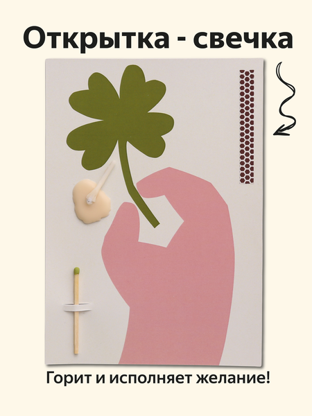 Открытка оснащена свечкой, спичкой и фосфорной Особенностью открытки является наличие свечки, спички и фосфорной терки. Чтобы зажечь свечку, достаточно провести спичкой по терке и поджечь ее. Фитиль с воском горит около 4 минут, что позволяет вам насладиться моментом загадывания желания. Иллюстрация напечатана на матовом плотном картоне 350 г, поверхность покрыта пленкой Soft touch с повышенными тактильными свойствами. Такое покрытие придает открытке защиту от влаги, матовый премиальный эффект, бархатистую структуру на ощупь и долгое время сохраняет оттенок, не тускнея. Размер открытки без упаковки 148х105 мм (А6) На обратной стороне открытки предусмотрено место для ваших пожеланий. Это делает ее еще более личной и уникальной. Также можно оставить данное пространство для получателя, чтобы он там описал свое желание. Многие не выкидывают открытку после использования, а оставляют на память. В упаковке предусмотрена дополнительная защита от повреждений при транспортировке, что гарантирует сохранность открытки при пересылке. В комплекте с открыткой идут две дополнительные спички на случай, если основная не загорится. Пылкая открытка-свечка - это интерактивное и уникальное изделие, которое подарит вам и вашим близким незабываемые моменты