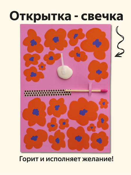 Особенностью открытки является наличие свечки, спички и фосфорной терки. Чтобы зажечь свечку, достаточно провести спичкой по терке и поджечь ее. Фитиль с воском горит около 4 минут, что позволяет вам насладиться моментом загадывания желания. Иллюстрация напечатана на матовом плотном картоне 350 г, поверхность покрыта пленкой Soft touch с повышенными тактильными свойствами. Такое покрытие придает открытке защиту от влаги, матовый премиальный эффект, бархатистую структуру на ощупь и долгое время сохраняет оттенок, не тускнея. Размер открытки без упаковки 148х105 мм (А6) На обратной стороне открытки предусмотрено место для ваших пожеланий. Это делает ее еще более личной и уникальной. Также можно оставить данное пространство для получателя, чтобы он там описал свое желание. Многие не выкидывают открытку после использования, а оставляют на память. В упаковке предусмотрена дополнительная защита от повреждений при транспортировке, что гарантирует сохранность открытки при пересылке. В комплекте с открыткой идут две дополнительные спички на случай, если основная не загорится. Пылкая открытка-свечка - это интерактивное и уникальное изделие, которое подарит вам и вашим близким незабываемые моменты